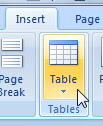 Insert a table in Microsoft Word 2007